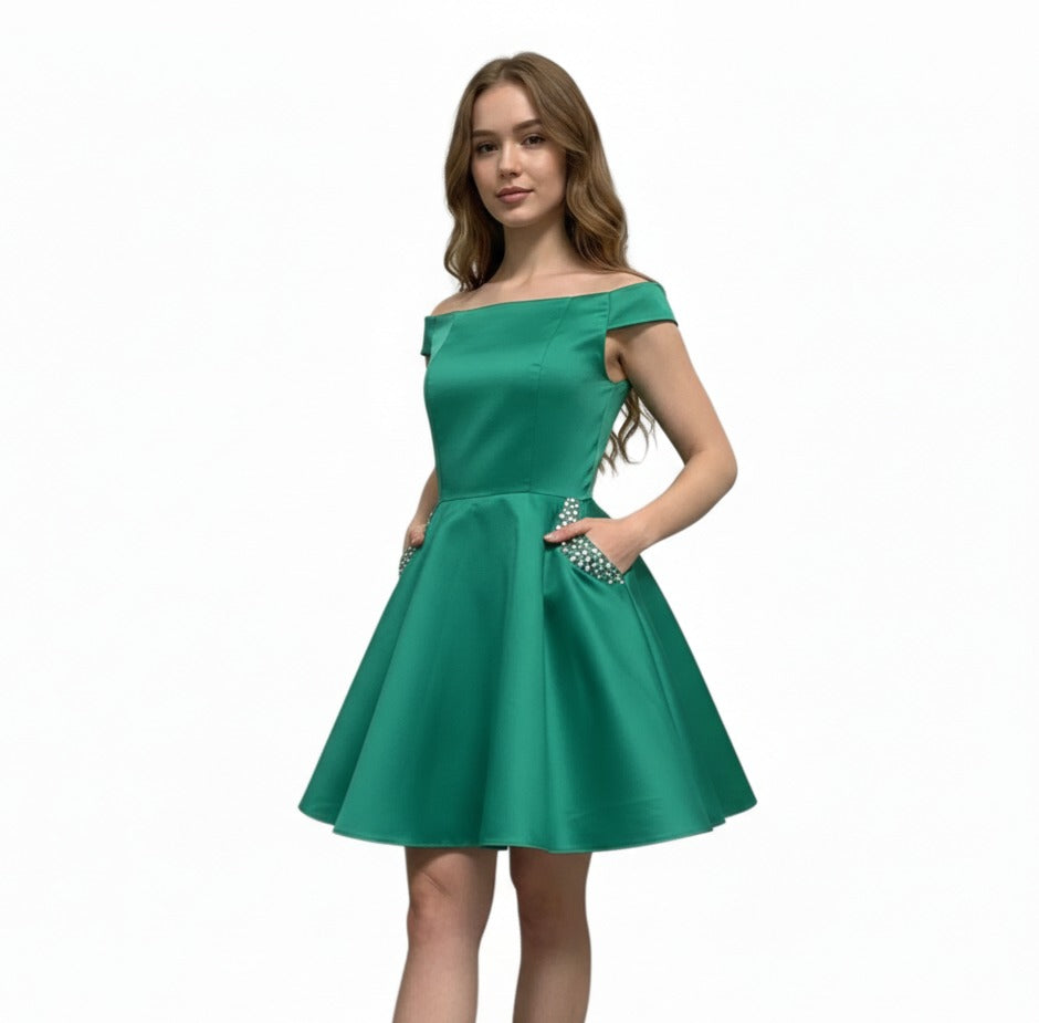 • Load image into Gallery viewer, Elegant Off-the-Shoulder Satin Party Dress